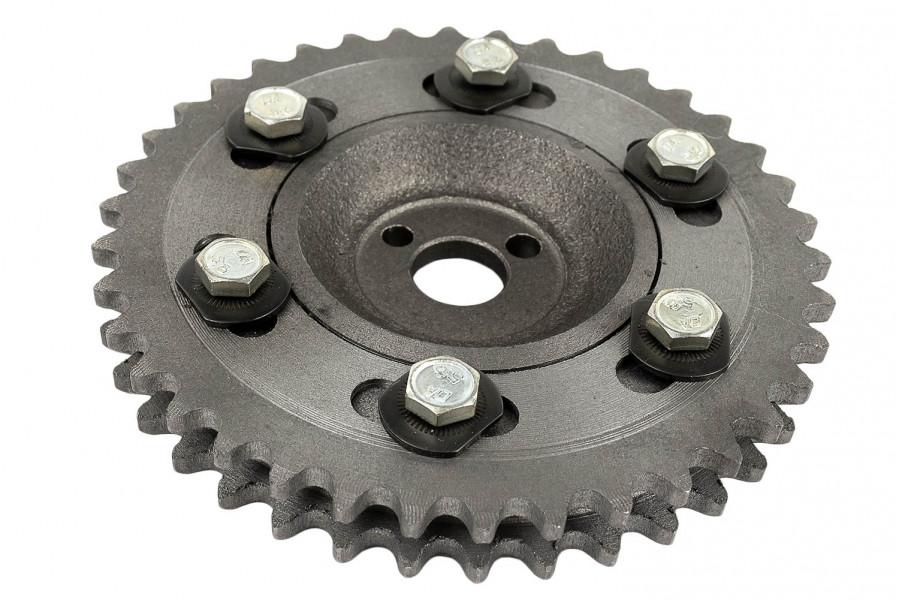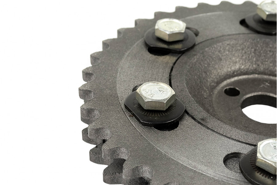 Разрезная шестерня ГРМ является неотъемлемым элементом при тюнинге двигателя путем установки доработанных распредвалов. Она позволяет выставить точное расположение коленчатого и распределительного валов для оптимизации фаз газораспределения и возможности их оперативной корректировки. Без настройки данных фаз установка доработанных валов теряет всякий смысл.