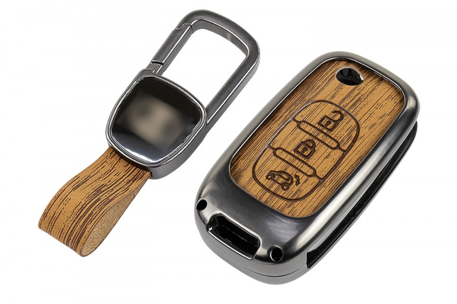 Алюминиевый чехол ключа с элегантной текстурой под коричневое дерево станет стильным аксессуаром для вашего автомобиля.