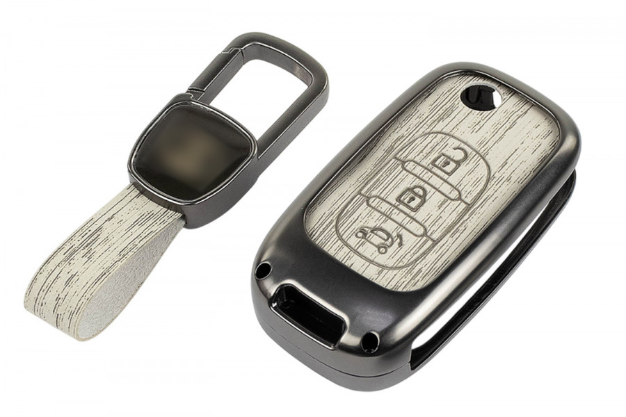Алюминиевый чехол ключа с элегантной текстурой под серое дерево станет стильным аксессуаром для вашего автомобиля.