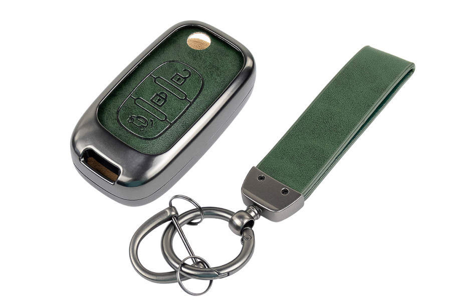 Алюминиевый чехол ключа Sal-Man с брелоком (зеленый с текстурой кожи) для Веста, Гранта FL 2018-2023 г., Иксрей, Ларгус FL