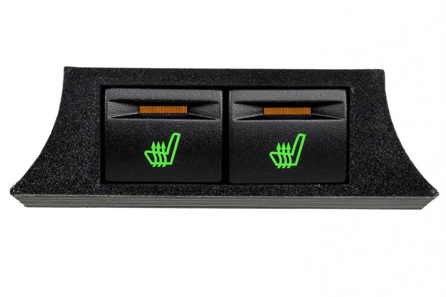 Блок с кнопками обогрева сидений с зеленой подсветкой и оранжевой индикацией для установки в тоннель пола автомобилей Лада Гранта (ВАЗ 2190, 2191), Калина 2 (ВАЗ 2192, 2194) и Datsun.