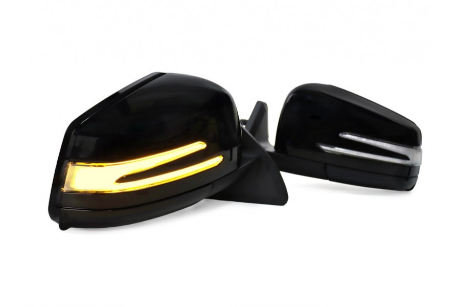 Данные механические зеркала оснащены повторителем поворотника и выполнены в стиле АМГ. Складывание зеркал осуществляется вручную.