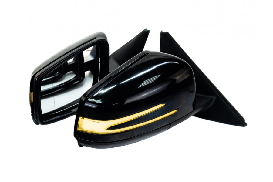 Данные механические зеркала, выполненные в стиле АМГ, оснащены повторителем поворотника и функцией обогрева. Складывание зеркал осуществляется вручную.