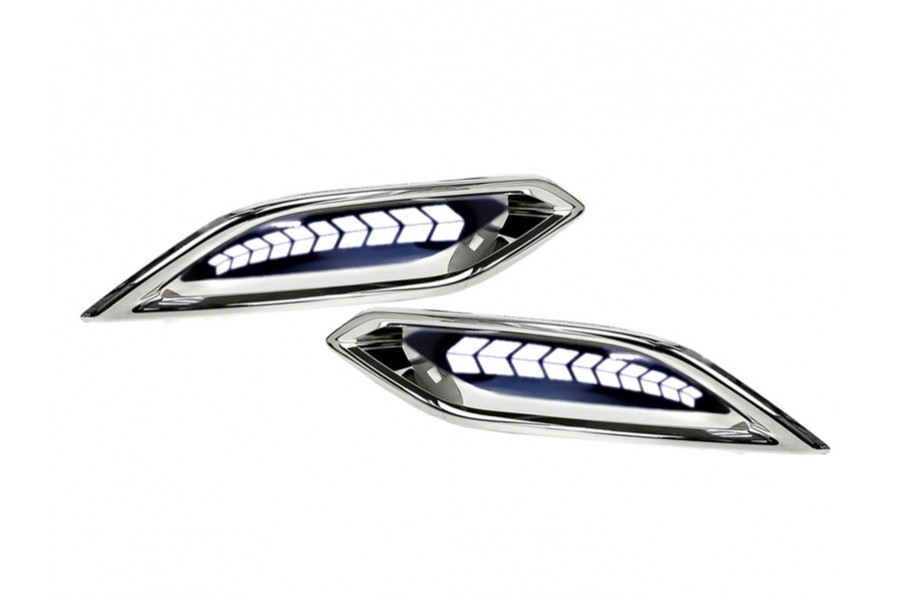 Диодные белые 3-режимные катафоты заднего бампера с узором Стрелки и хром облицовкой для Веста NG