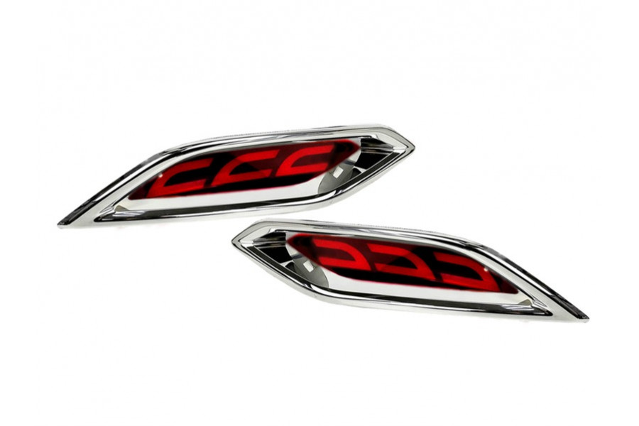 Диодные красные 3-режимные катафоты заднего бампера с узором 3-скобки и хромированной облицовкой для Лада Веста NG это стильный аксессуар, который не только улучшит внешний вид вашего автомобиля, но и обеспечит дополнительную безопасность на дороге.
