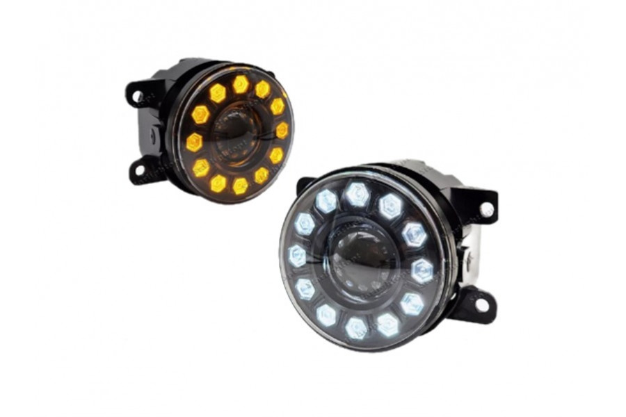 Диодные ПТФ EALights с линзой, регулировкой и ДХО-соты с функцией поворотника для Гранта FL, Веста, Веста NG, Икс Рей, Ларгус FL, Нива Урбан, Рено