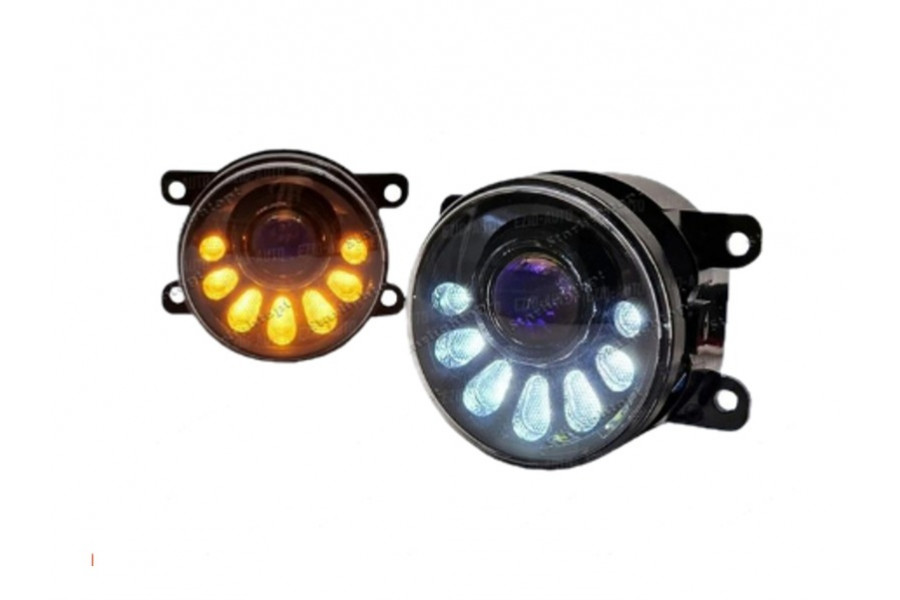 Диодные ПТФ EALights с линзой, регулировкой и ДХО в стиле фар Нива с функцией поворотника для Гранта FL, Веста, Веста NG, Иксрей, Ларгус FL, Нива Урбан, Рено