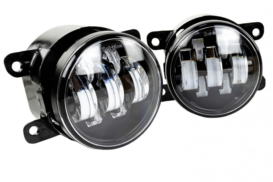 - ПТФ Sal-Man оборудованы защитной платой, программно-занижающей фактическую мощность диодов с целью увеличения срока службы противотуманных фар! Суммарная мощность диодов ближнего света составляет 60W, дальнего - 50W, но для продления срока службы их свечения, производитель предусмотрел встроенную программную защиту, поэтому реальная мощность ниже заявленной!