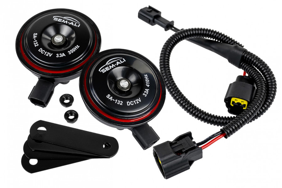 - Комплект: 1 жгут проводов, 2 сигнала, крепежные элементы