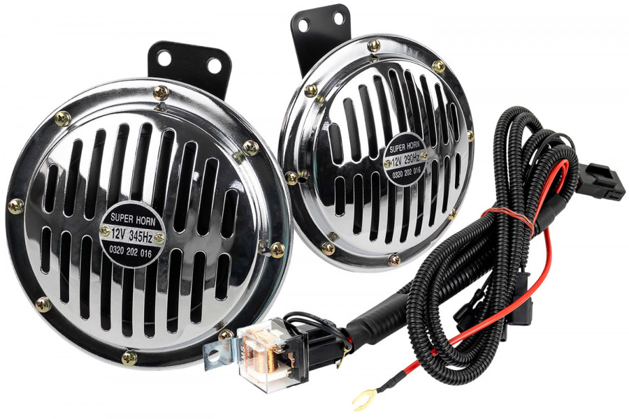 - Комплект: 2 сигнала, 1 жгут проводов, крепеж