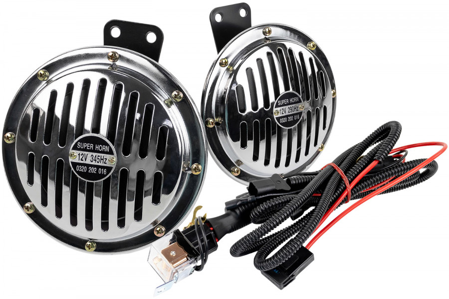 - Комплект: 2 сигнала, 1 жгут проводов, крепеж