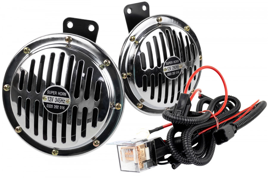 - Комплект: 2 сигнала, 1 жгут проводов, крепеж