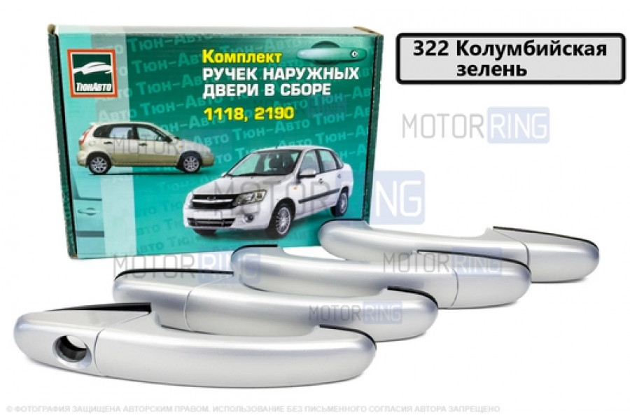 Евроручки дверей Тюн-Авто окрашенные в цвет Колумбийская зелень (322) для Калина, Калина 2, Гранта