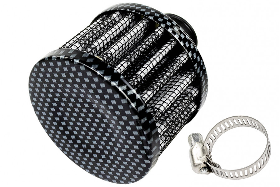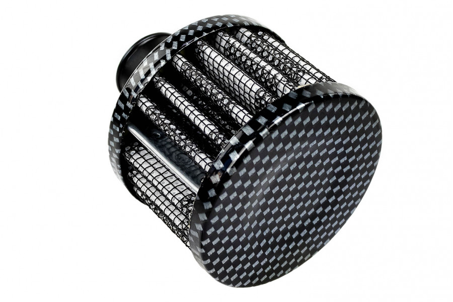 Предназначен специально для установки на сапун инжекторных моделей отечественного производства. Внешняя поверхность фильтра выполнена с рисунком под Карбон, а фильтрующий элемент напоминает узор "шашечкой"