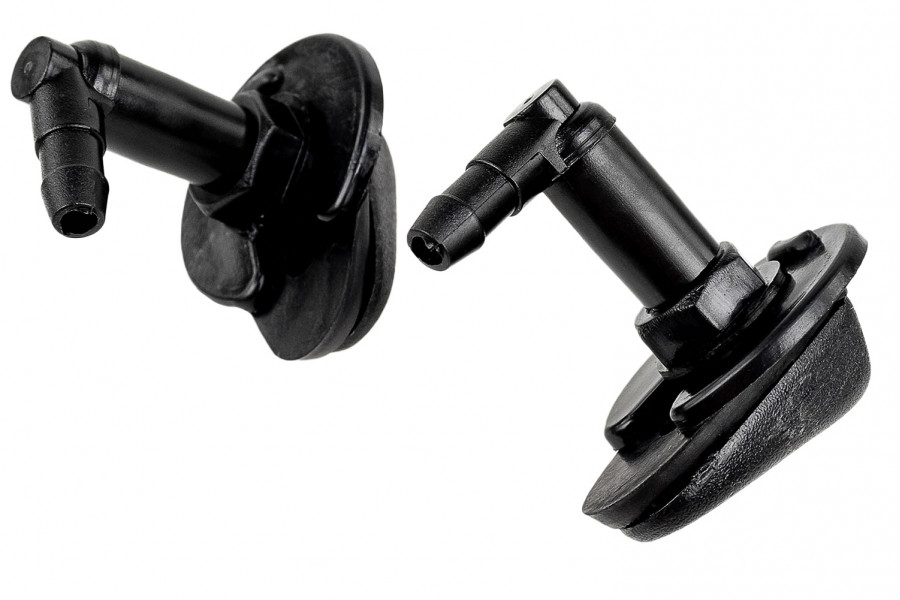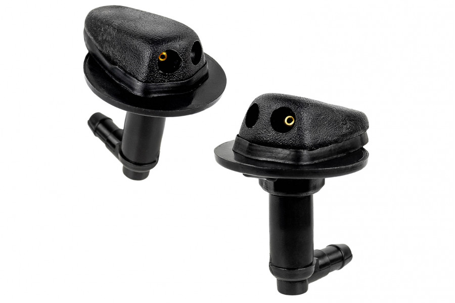 Монтаж этих форсунок достаточно прост и не требует специальных инструментов или навыков. Каждый жиклер оснащен двумя отверстиями для равномерного распределения струи омывающей жидкости. а также Г-образным крепление стеклоомывающей трубки.