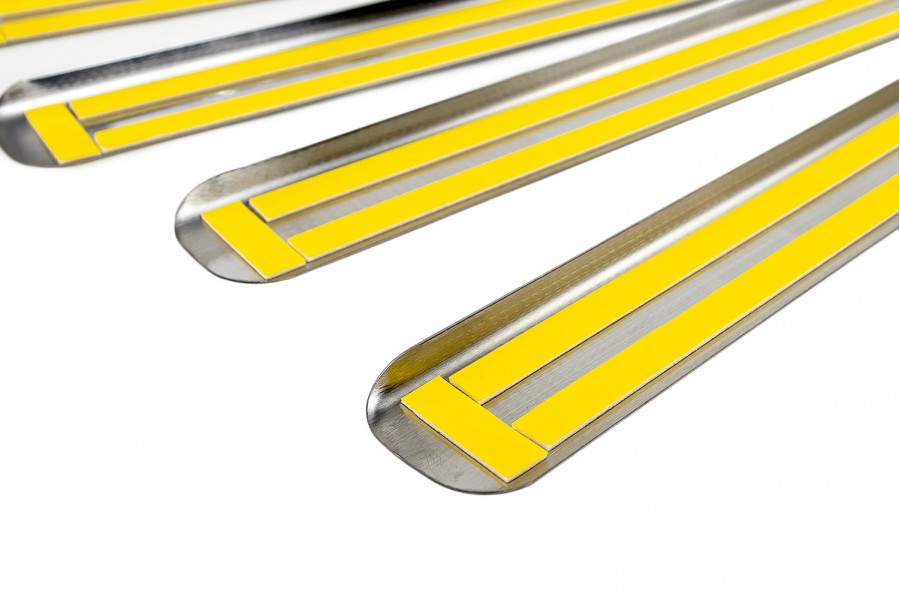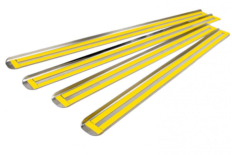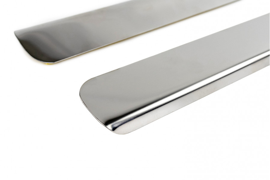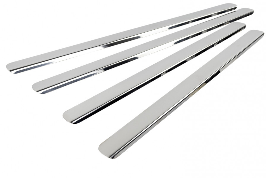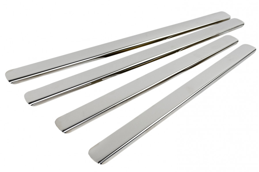 Данные накладки предназначены для защиты порогов от царапин и прочих механических повреждений. Также служат декоративным элементом тюнинга благодаря хромированному покрытию. Устанавливаются при помощи двухстороннего скотча, который поставляется в комплекте.