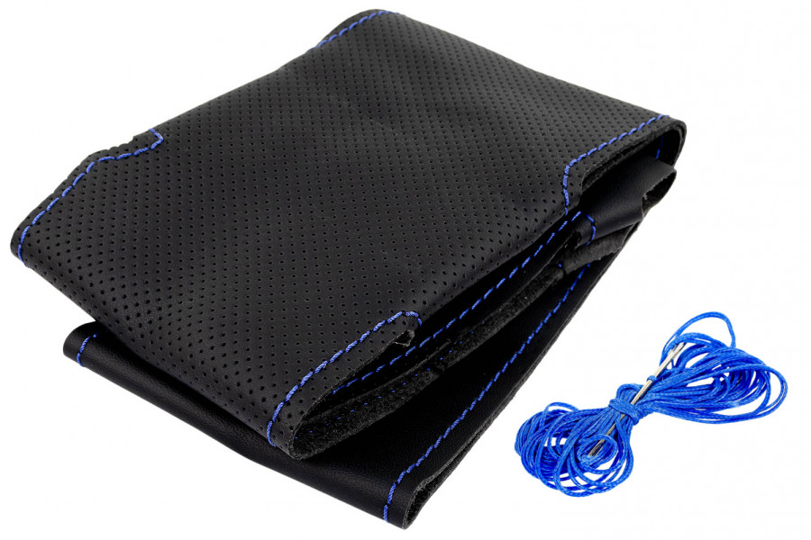 Синяя декоративная нить придает изделию стильный внешний вид и подчеркивают индивидуальность автовладельца.