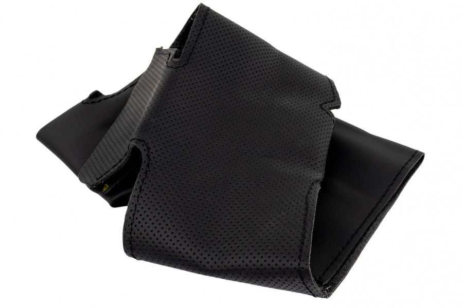 Оплетка выполнена из качественной натуральной кожи черного цвета с аккуратной черной строчкой подчеркивающей элегантность изделия.