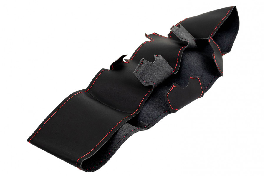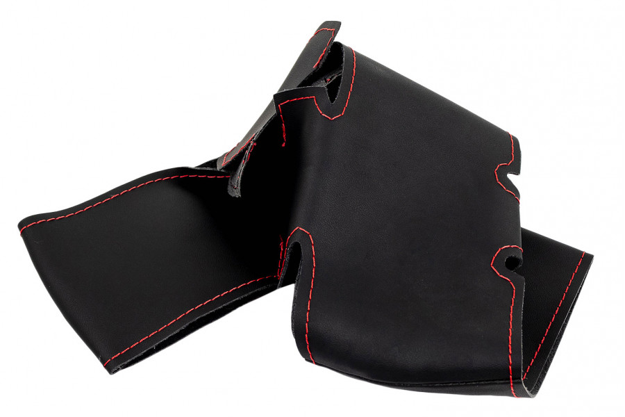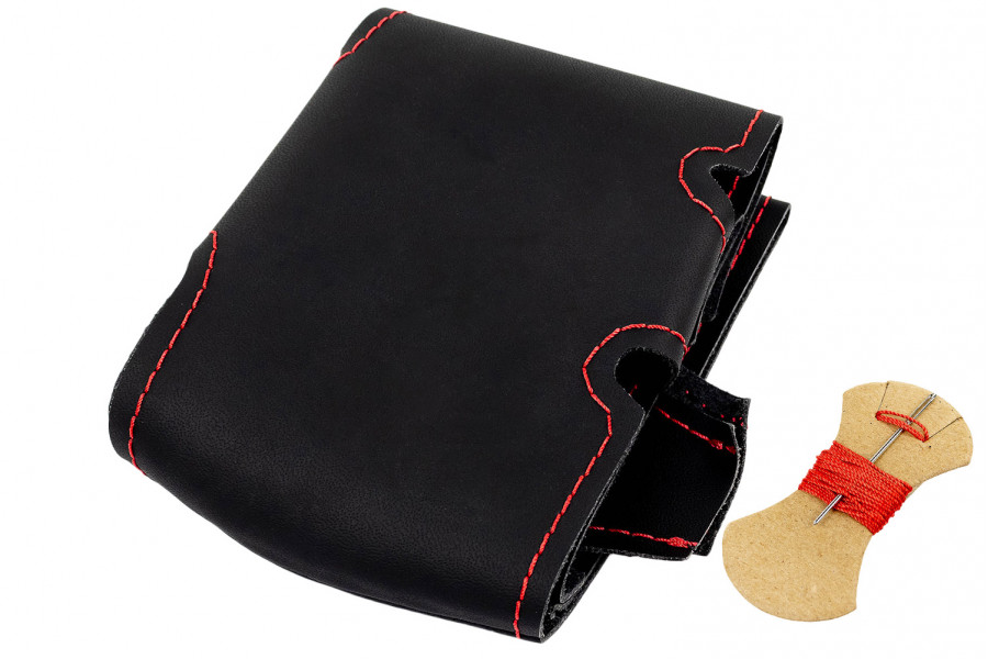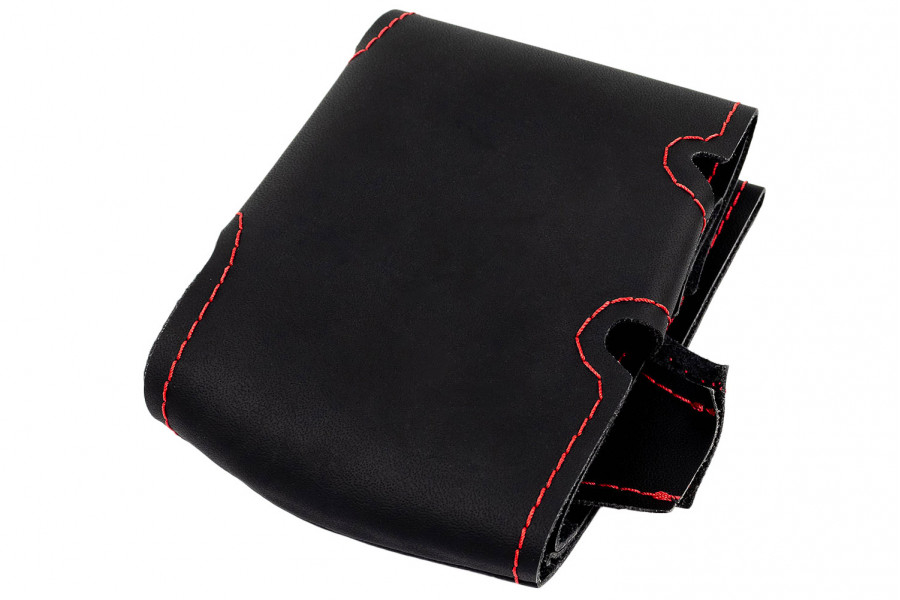 Красная строчка, добавленная в дизайн изделия, придает рулевой оплетке стильный и современный вид, подчеркивая индивидуальность автовладельца.