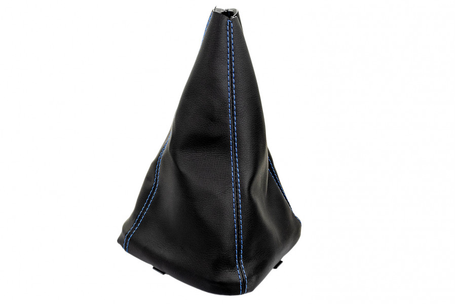 Кожух рычага коробки переключения передач выполненный из качественной экокожи и украшенный декоративной прострочкой синего цвета для автомобилей ВАЗ десятого семейства.