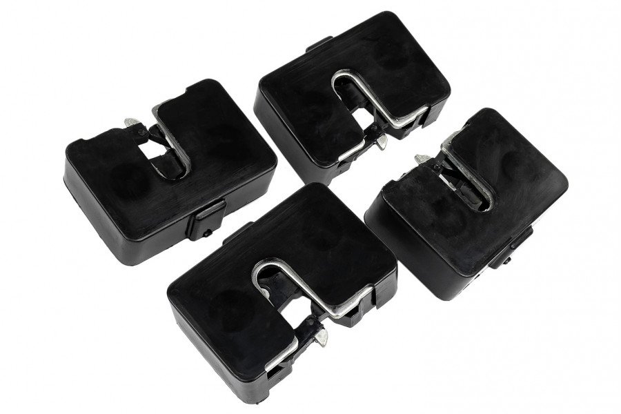 Бесшумные замки усовершенствованной конструкции на предназначены для повышения комфортности при закрывании и открывании дверей. В комплект входят четыре бесшумных замка, четыре бесшумных болта и четыре пластиковых пыльника. Они отличаются от штатных тем, что металлическая защелка и палец фиксатора замка имеют пластмассовое покрытие, что позволяет избавиться от громкого лязга при закрытии двери, особенно, при резком.