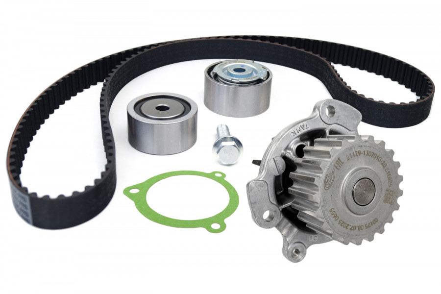 - Комплект: 1 ремень, 2 ролика, 1 помпа, 1 прокладка