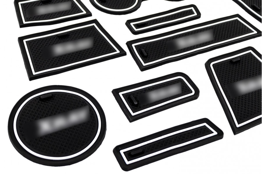 Черно-белый цвет ковриков придает интерьеру автомобиля современный и элегантный вид.
