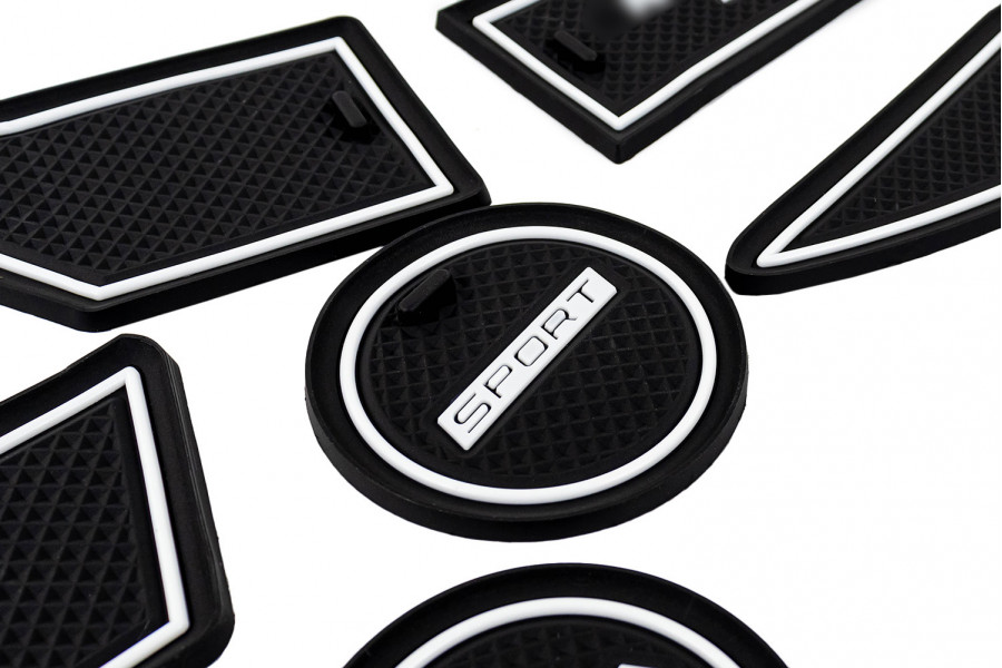 Силиконовые коврики панели приборов и консоли Sport черно-белые для Калина 2