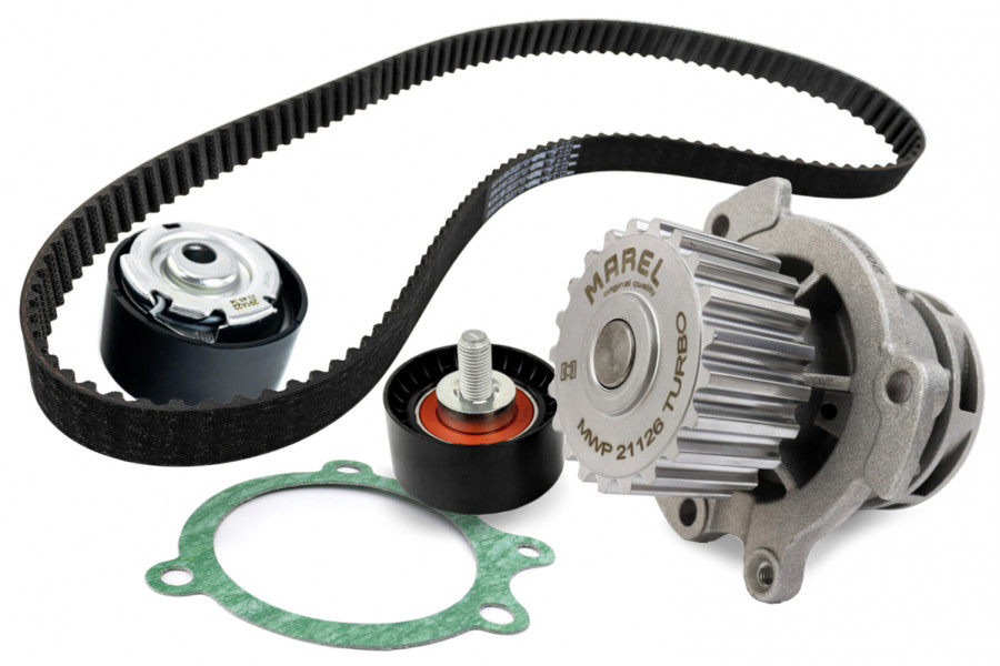 - Комплект: 1 ремень, 2 ролика, 1 помпа, 1 прокладка