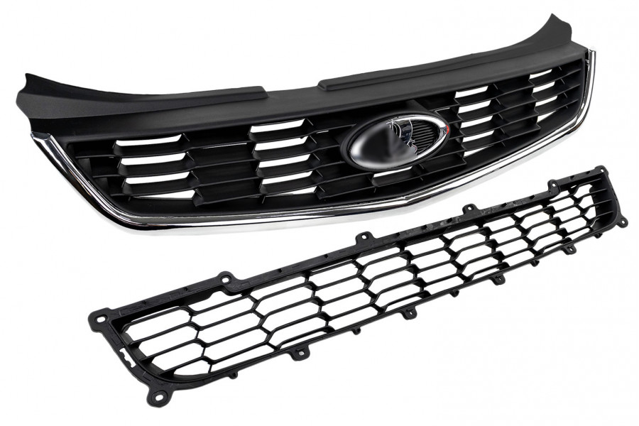 Решетка выполнена из высококачественного пластика, устойчивого к воздействию внешней среды, что гарантирует ее долговечность. Хромированные молдинги добавляют элегантности.