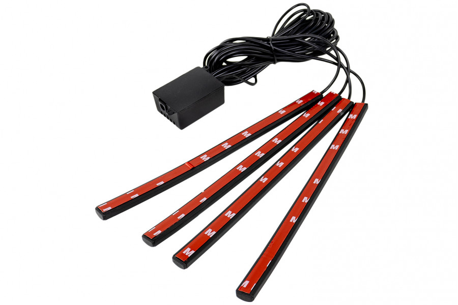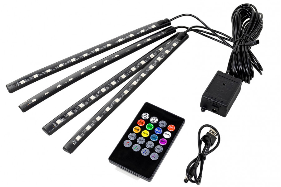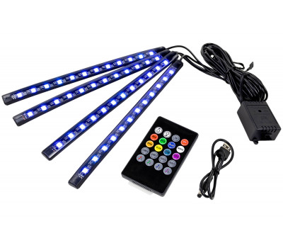 - Комплект: 4 диодных ленты с блоком, 1 кабель питания, пульт