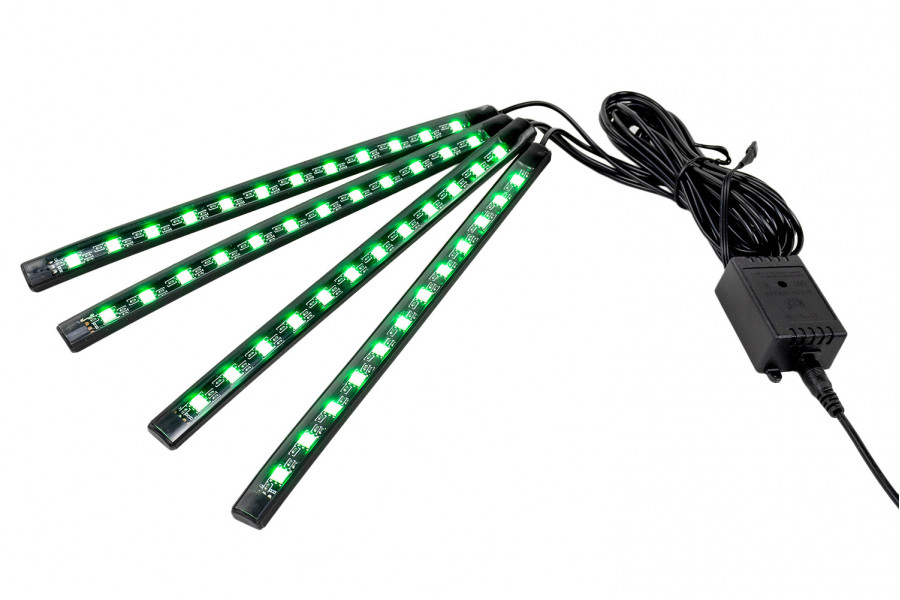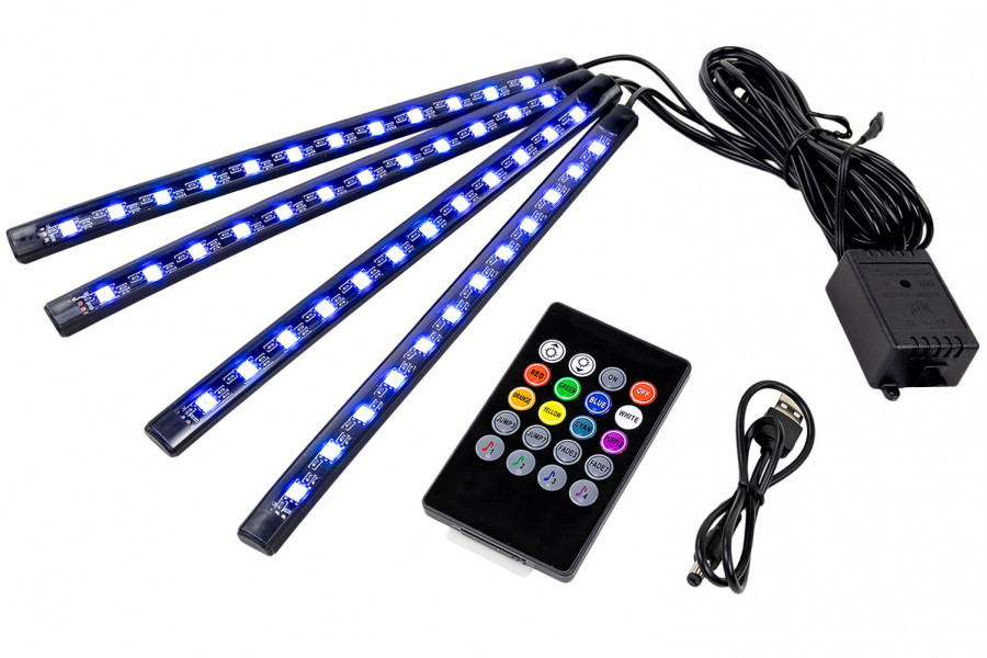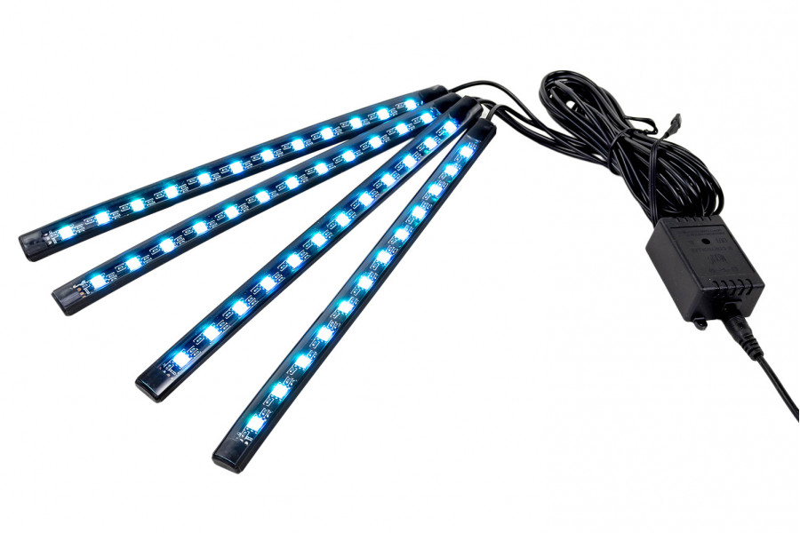 Комплект: 4 диодных ленты с блоком, 1 кабель питания, пульт