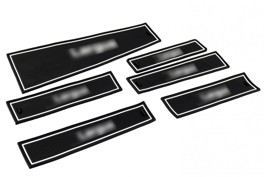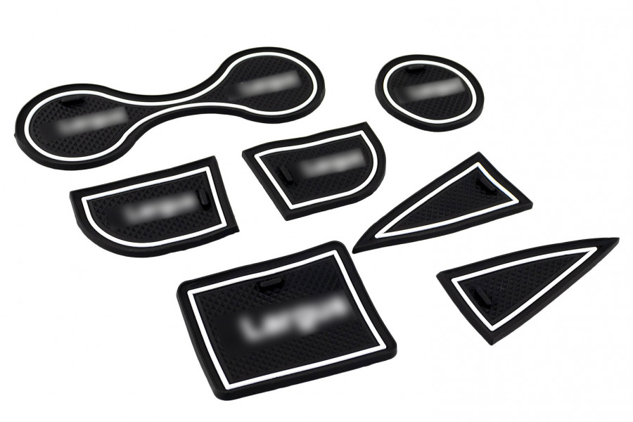 Силиконовые черно-белые коврики панели приборов и консоли — это стильный и практичный аксессуар, который гармонично впишется в интерьер вашего автомобиля.