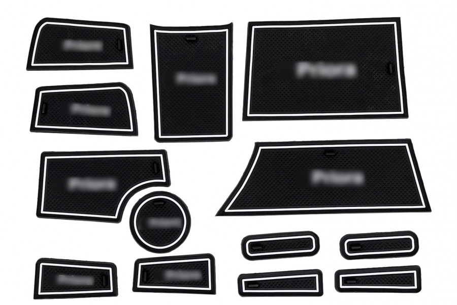 Силиконовые коврики панели приборов и консоли черно-белые для Приора 2 (2013-2018)