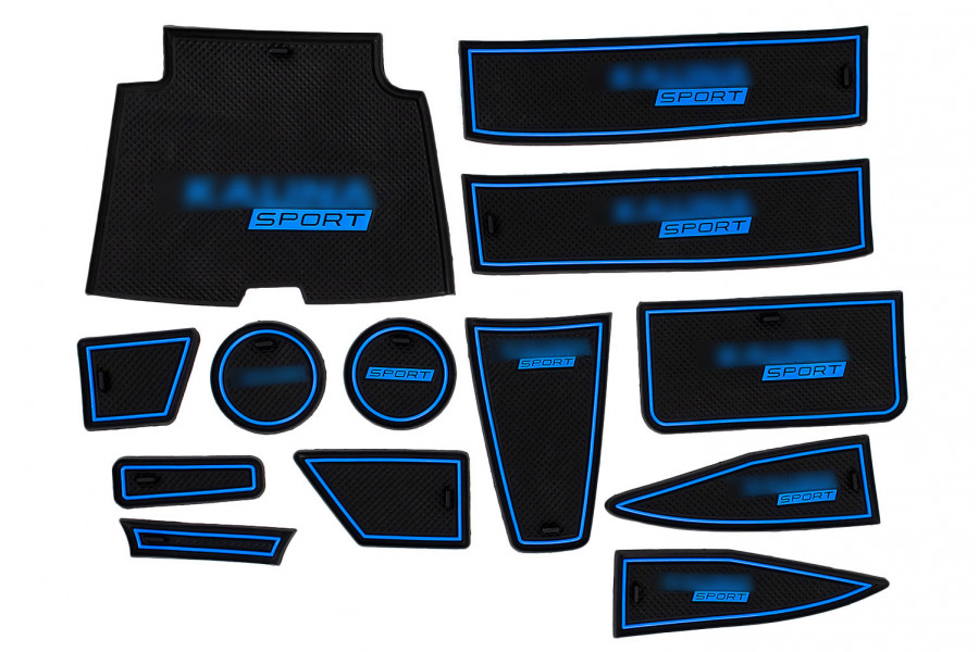 Силиконовые коврики панели приборов и консоли Sport черно-синие для Калина 2