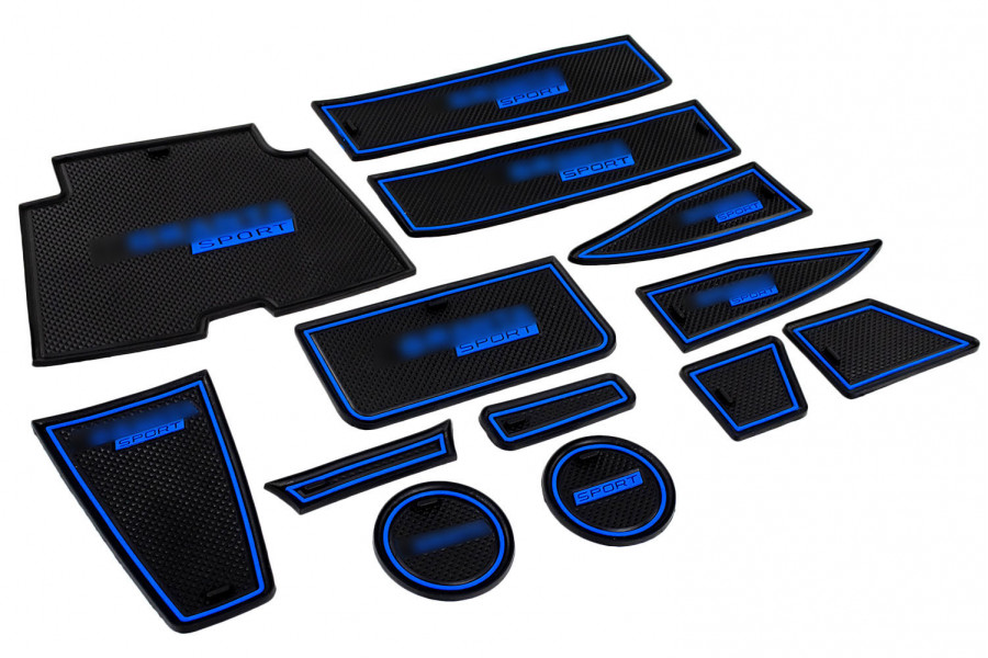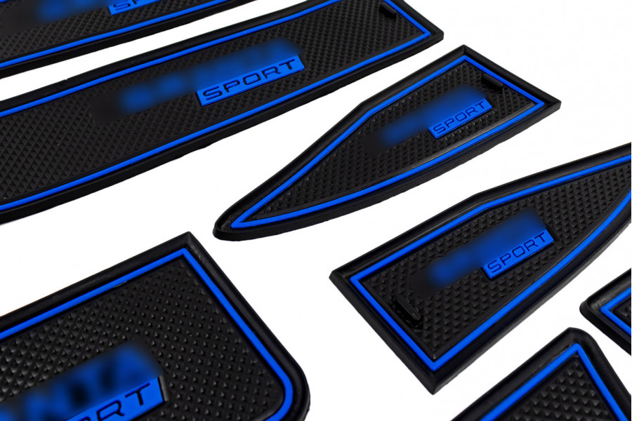 Комплект ковриков из силикона с оригинальной черно-синей расцветкой специально разработанный для панели приборов и центральной консоли автомобиля FL.