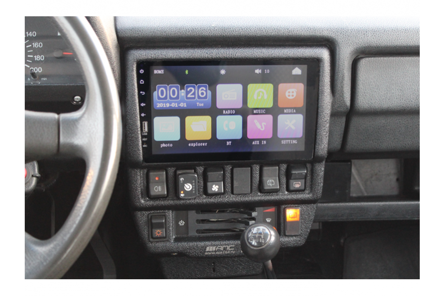 Консоль позволяет устанавливать магнитолы размерностью 9 дюймов.