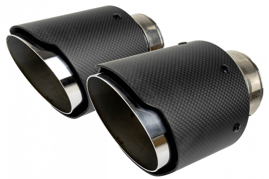 Насадки глушителя из нержавеющей cтали имеет фигурную накладку под карбон, круглую форму, а также скос и устойчивы к окислению и коррозии.