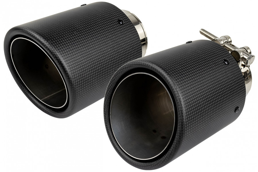 Насадки глушителя из нержавеющей cтали с накладками с рисунком «карбон» имеют круглую форму, а также скос и устойчивы к окислению и коррозии.