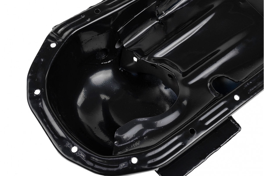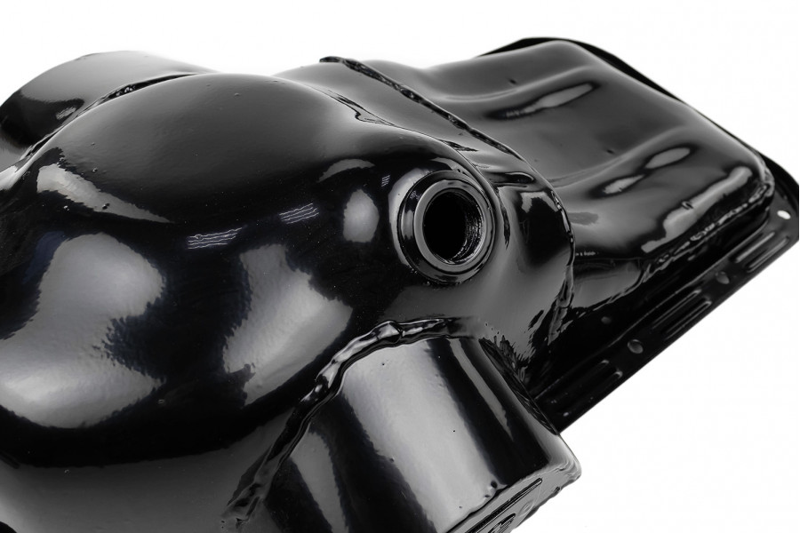 Установка данного поддона предотвращает масляное голодание двигателя при активном прохождении поворотов, наличие неподвижной шторки исключает закисание и зависание шторки в закрытом положении, увеличенный объем способствует лучшему охлаждению масла.