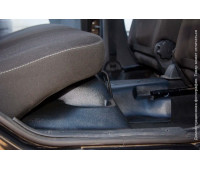 Накладки на ковролин крепятся на лип-фиксаторы установленные на тыльной стороне и фиксируются под заводские уплотнители автомобиля. Установка изделий производится в штатные места и осуществляется даже в гаражных условиях.