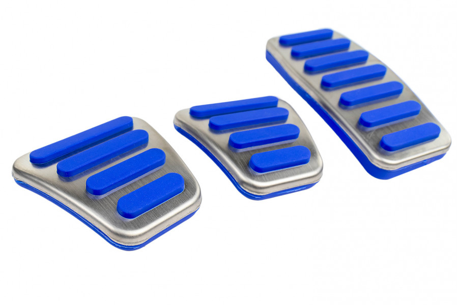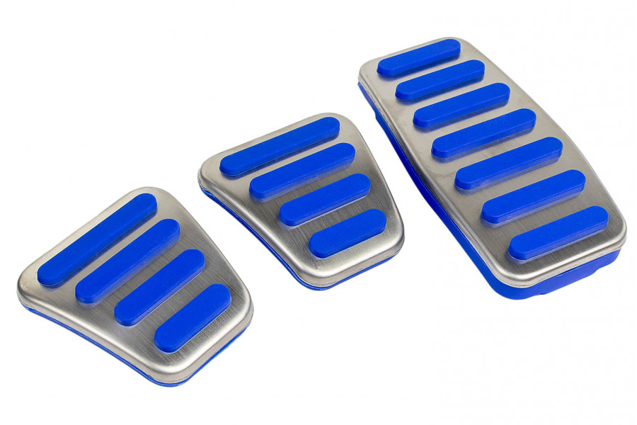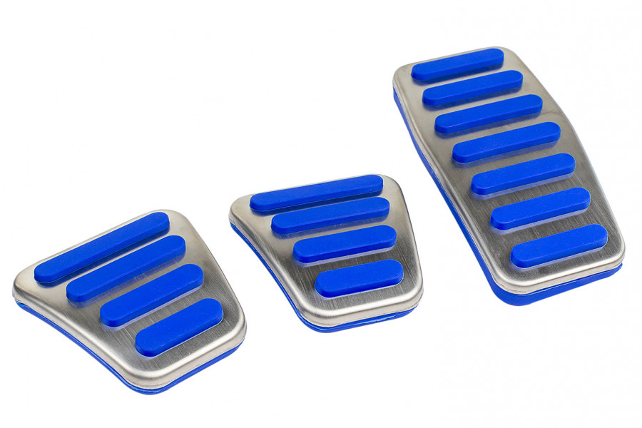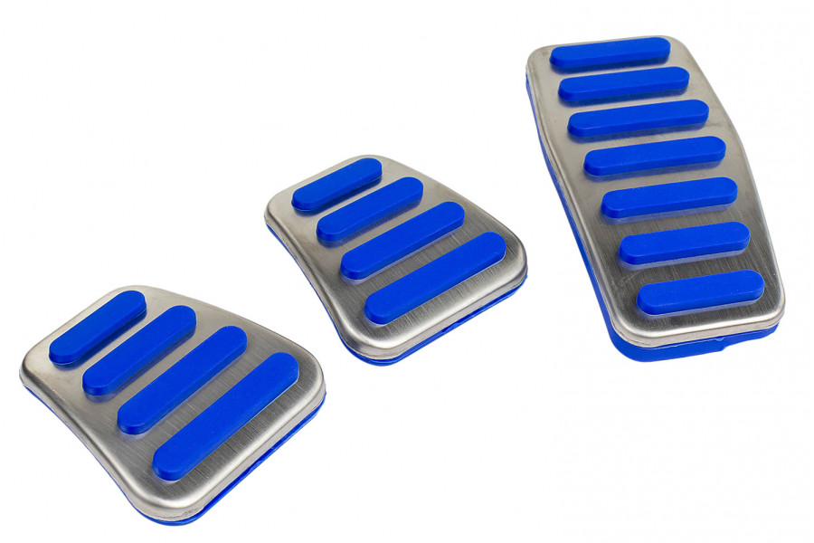 Накладки на педали Sal-Man с синими резиновыми вставками под МКПП и Е-Газ Рикор (10 см) для Калина, Приора, Гранта, Лада 4х4 с 2020 года, Нива Легенд, Тревел, Шевроле Нива, ВАЗ 2114-2115, Датсун