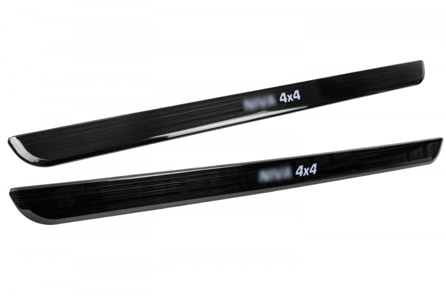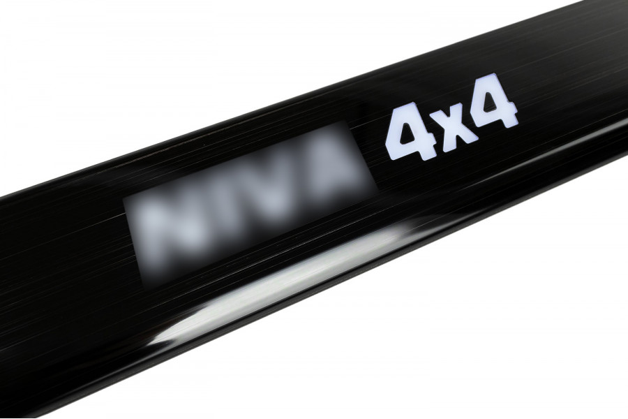 Накладки внутренних порогов черный лак с белой подсветкой для 3-дверной Нива 4х4, Нива Легенд