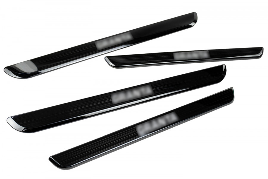 Накладки внутренних порогов черный лак с зеленой подсветкой для Гранта, Гранта FL