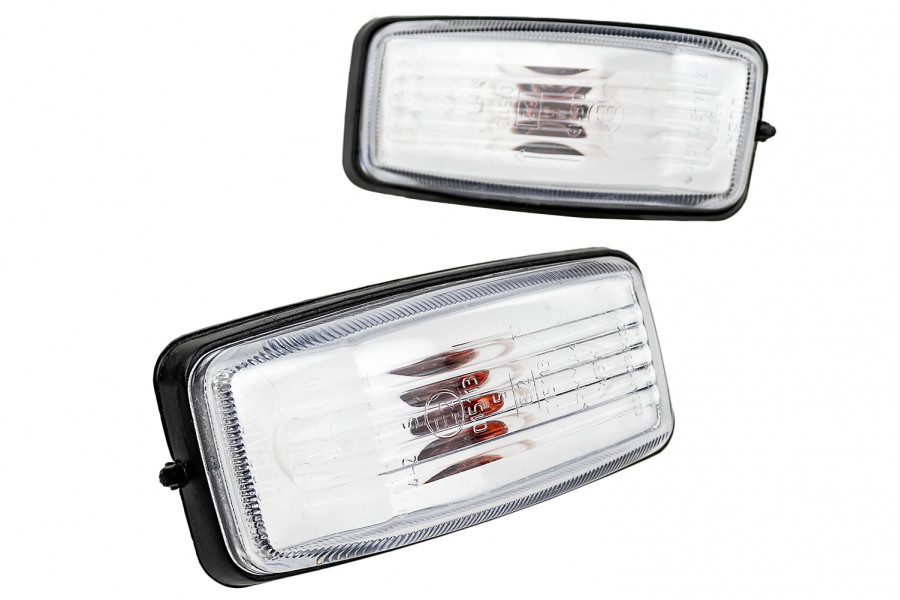 Данные элементы изготовлены из качественных материалов, что обеспечивает их долгий срок службы и устойчивость к износу. Белый цвет повторителей элегантно вписывается в дизайн любого цвета кузова, делая автомобиль более заметным на дороге. Они четко показывают сигнал поворота, тем самым увеличивая уровень безопасности и улучшая видимость транспортного средства для остальных участников движения.