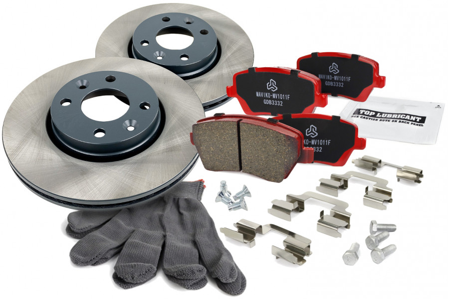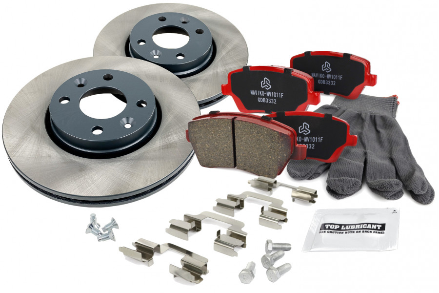 Передние тормозные колодки поставляются в комплекте с вентилируемыми тормозными дисками от зарекомендовавшего себя бренда МАВИКО.