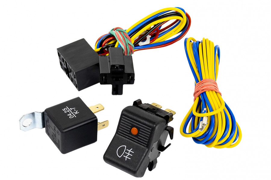 Монтажный набор для противотуманных фар для автомобилей ВАЗ 2107, 2106, 2105, 2104, 2103, 2102, 2101 и Лада 4х4 (Нива) до 2019 г.в. - это набор проводов, соединительных элементов, а также кнопки включения ПТФ с белой подсветкой и реле, необходимых для подключения и установки противотуманных фар на автомобиле.