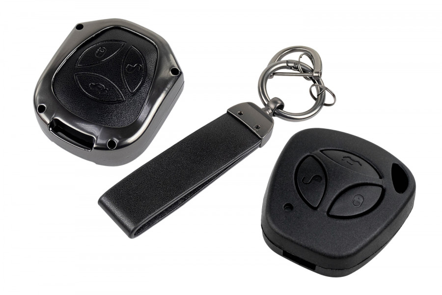Пульт центрального замка Норма с чипом и алюминиевым чехлом (черный с текстурой кожи) для Гранта, Гранта FL до 2019 г. и с 2023 г., Калина, Калина 2, Приора, Датсун