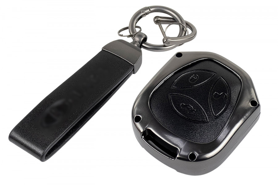 Алюминиевый чехол ключа с элегантной текстурой под черную кожу станет стильным аксессуаром для вашего автомобиля.