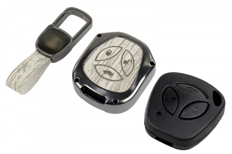Алюминиевый чехол ключа с элегантной текстурой под серое дерево станет стильным аксессуаром для вашего автомобиля.